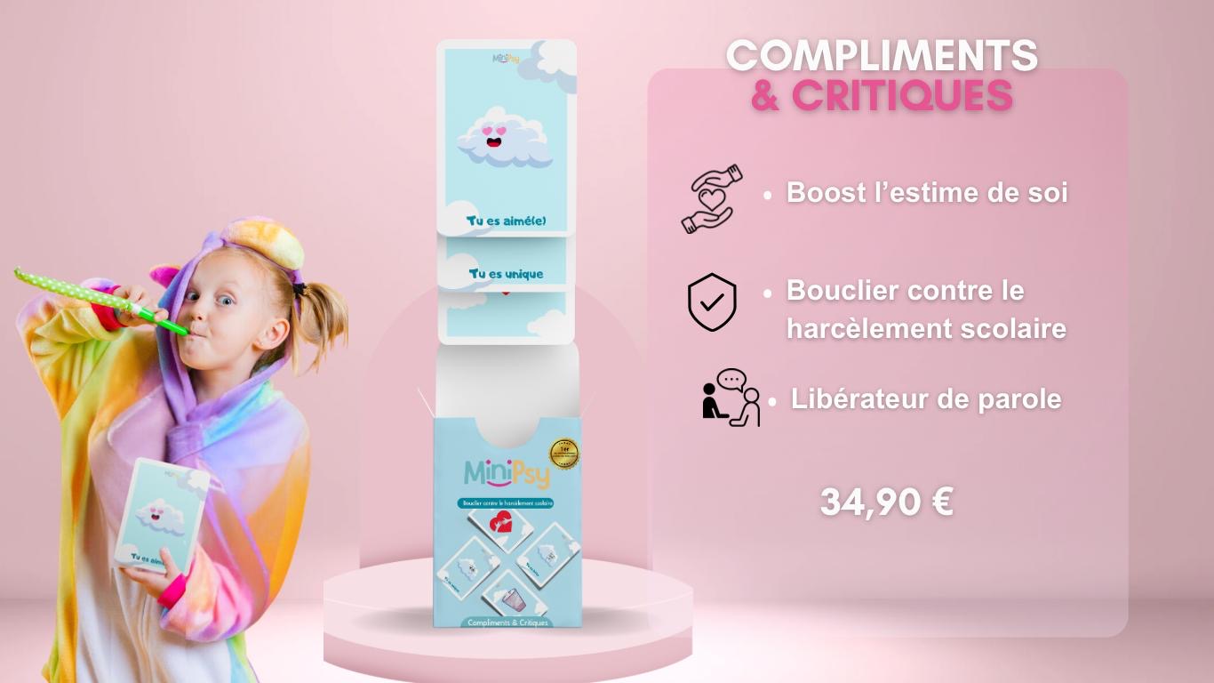 Avec notre jeu compliment et critique, développez l'estime et la confiance en soi de vos enfants en prévenant les méfaits du harcèlement scolaire.